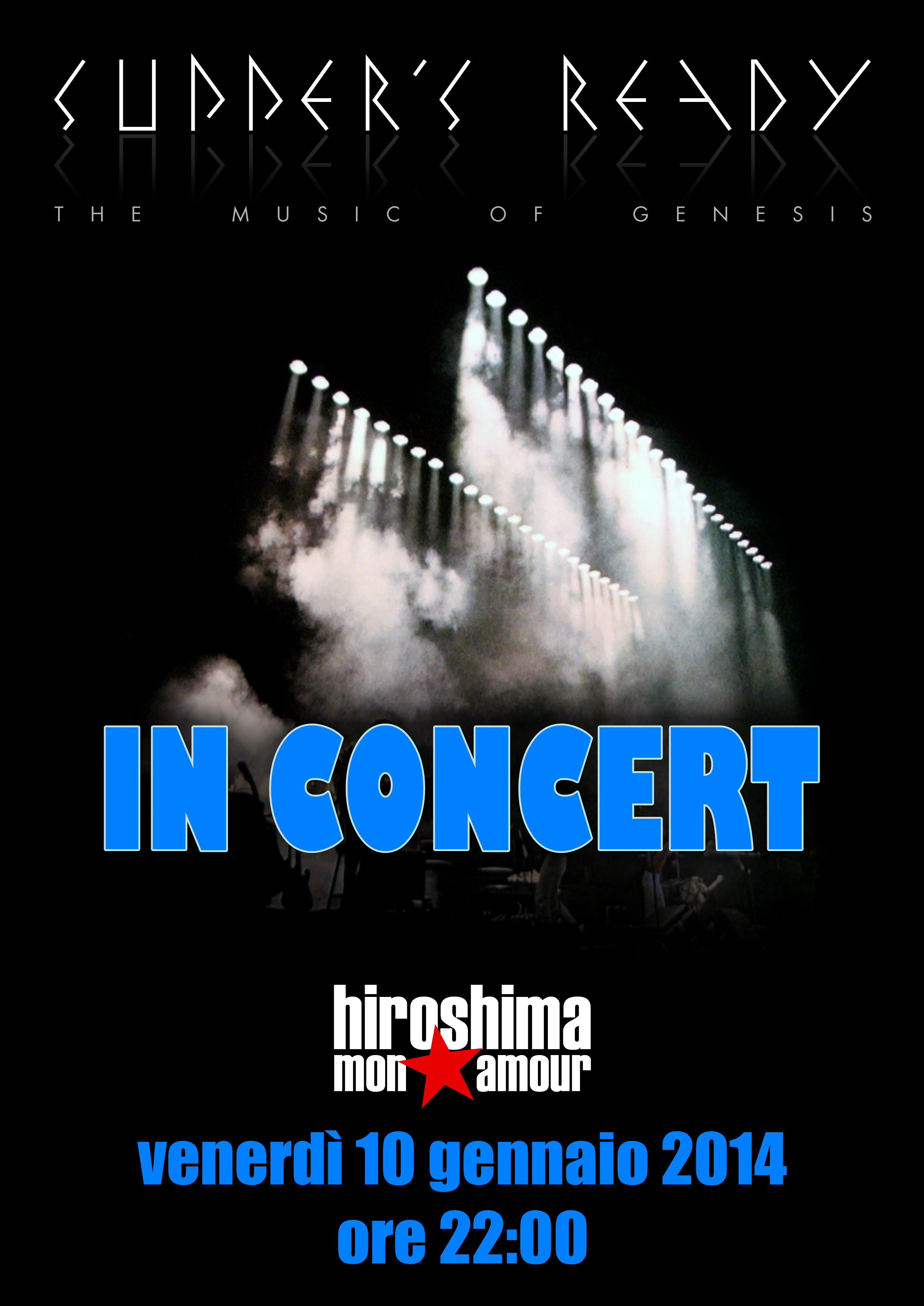 Concerti Supper's ready: 01/03/2014 - CLUB IL GIARDINO DI LUGAGNANO (VR) Ulteriori info sul sito www.suppers-ready.com |
